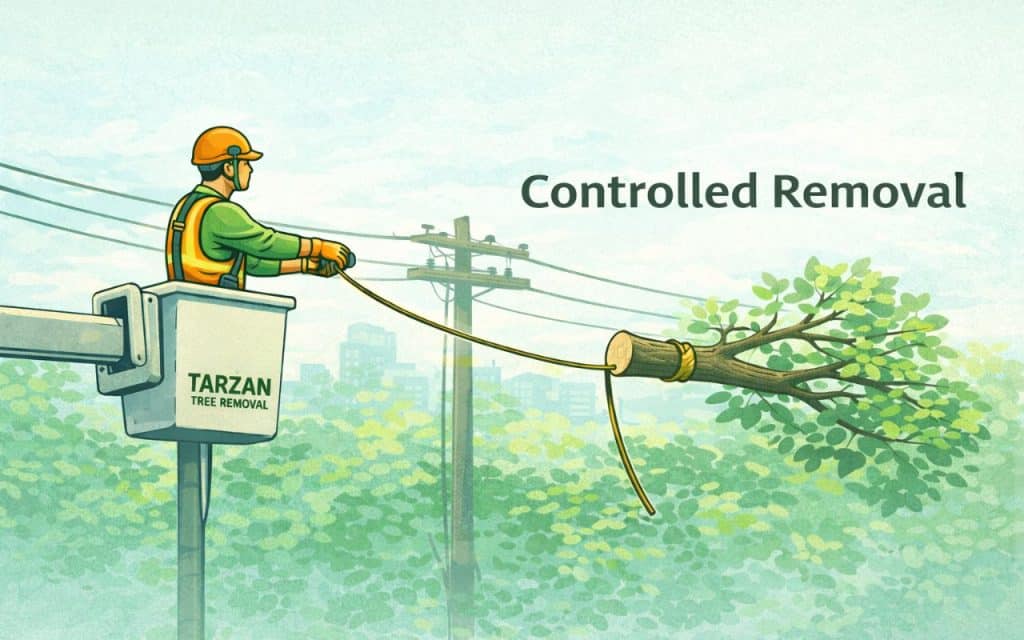 - The safest removals are controlled dismantles: sectional cuts + rigging + exclusion zones not “just cutting it down.”