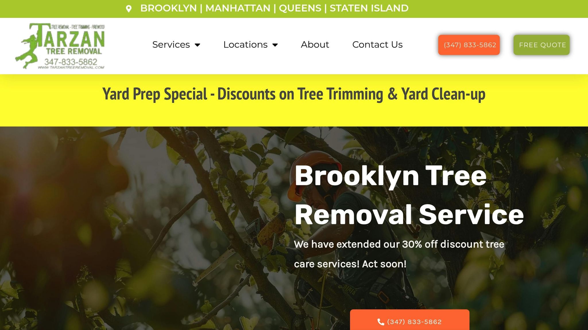 From tree removal and pruning to stump grinding and emergency storm response, Tarzan Tree Removal covers all aspects of tree care across NYC. Their team specializes in handling trees in tight spaces – like those growing between buildings, near property lines, or close to power lines – making them particularly suited for Brooklyn’s urban landscape.